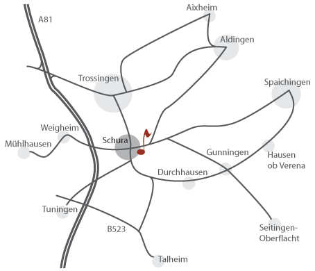 Das Gebäude der Musikschule Gisinger liegt verkehrsgünstig zwischen Trossingen, Aldingen und Spaichingen in Schura, Espachstr. 40 und verfügt über eigene, adäquate Unterrichtsräume.